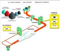 Una vez moldeada, la pieza es calentada, generalmente en una atmósfera protectora en hornos especiales, hasta alcanzar una temperatura inferior al punto de fusión del constituyente principal de la mezcla del polvo. Durante esta etapa del proceso, el sinterizado, las partículas individuales se sueldan, convirtiéndose en un sólido único confiriendo a la pieza sus propiedades finales.